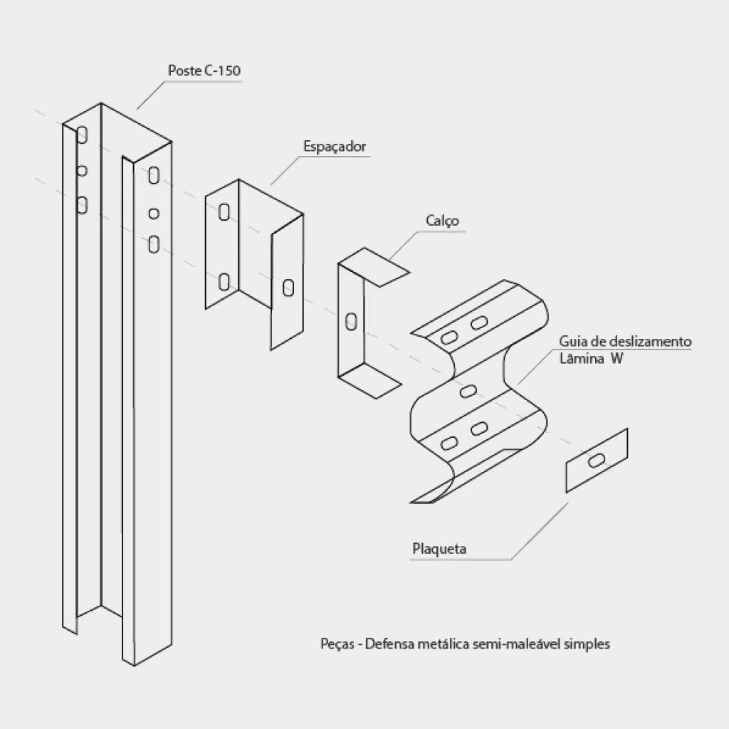 Defensa metálica semi-maleável que protege vias e minimiza acidentes, absorvendo impactos e aumentando a segurança em rodovias e locais estratégicos.