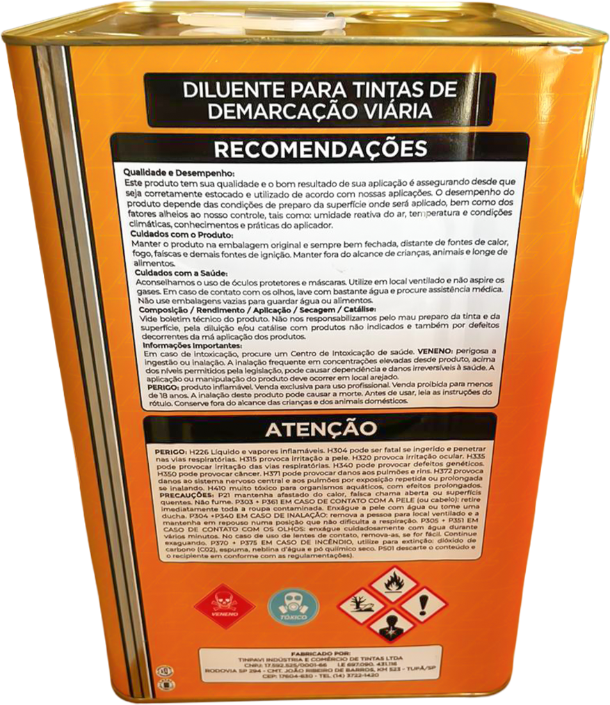 Este produto deve ser acondicionado em local coberto, seco, ventilado e afastado do contato de fontes de ignição e de alimentos; O produto passou pelo controle, sendo suas características resguardadas desde que seja corretamente conservado e utilizado.