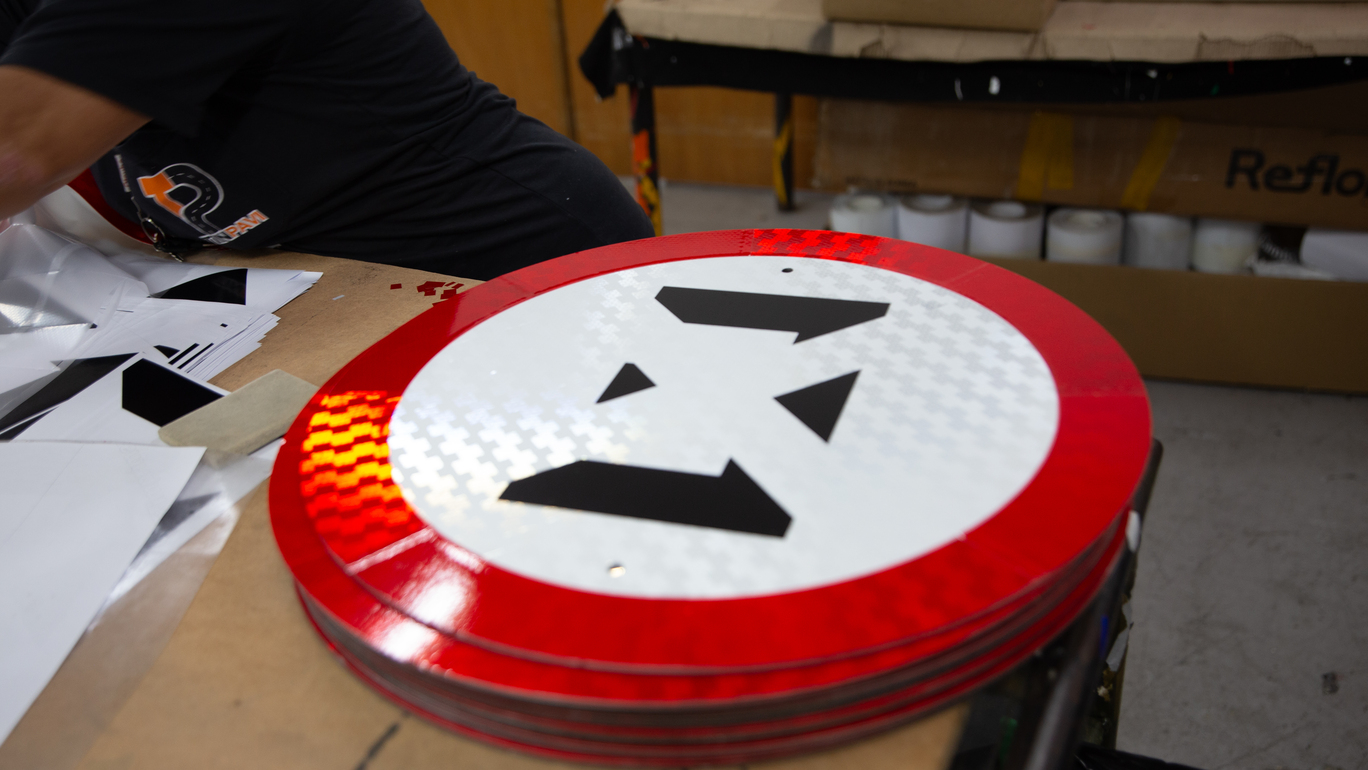 Os materiais refletivos utilizados seguem o padrão ABNT NBR 14.644 e apresentam diferentes tipos e durabilidades. O Tipo I é composto por microesferas e possui durabilidade mínima de 7 anos, assim como o Tipo II, de tecnologia prismática. Já o Tipo III, de alta intensidade prismática, e o Tipo IV, utilizado em legendas na cor preta, oferecem durabilidade mínima de 10 anos. Os Tipos X e X Fluorescente, ambos com tecnologia de grau diamante, garantem uma durabilidade mínima de 12 anos, sendo que o Tipo X Fluorescente ainda se destaca por sua visibilidade superior em condições de neblina e chuva.