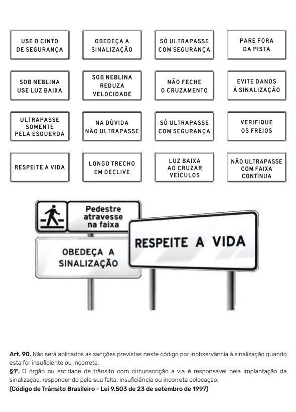 Placas educativas que reforçam normas de circulação e conduta no trânsito, promovendo segurança e conscientização para todos os usuários da via.