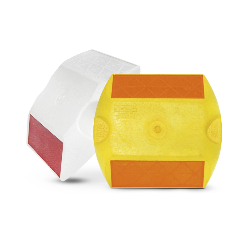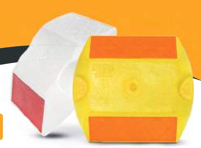 Dispositivo de segurança viária para reforço da sinalização horizontal, ideal para locais com grande fluxo e necessidade de alta visibilidade.
